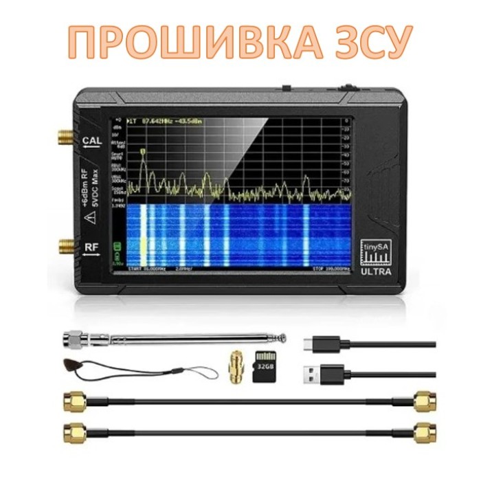 Портативний аналізатор спектру TinySa Ultra з підтримкою до 6 ГГц, а також має генератор сигналу до 4,4 ГГц, вбудовану батарея для роботи на протязі 2-х годин але за допомогою Powerbank можно збільшити час роботи.