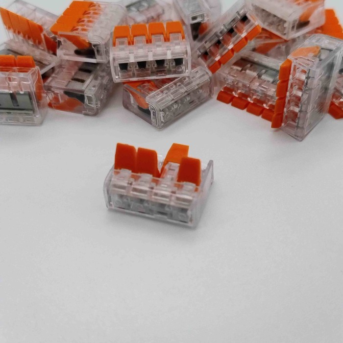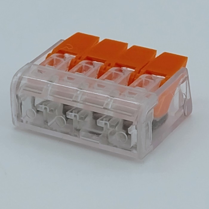 З’єднувач 4P Terminal Block KV2210 — це компактний електромонтажний елемент для швидкого та надійного з’єднання до чотирьох проводів без пайки. Його конструкція дозволяє легко фіксувати дроти за допомогою важелів, забезпечуючи безпечний контакт і зручність монтажу.
