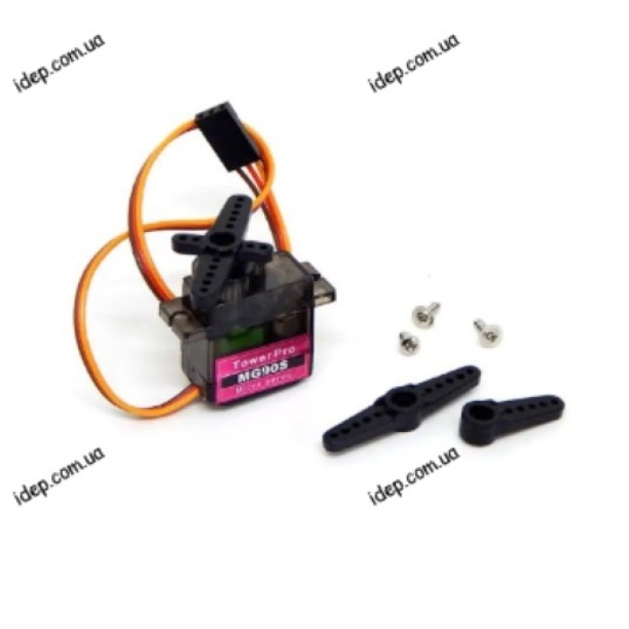 Мікросервопривід типу MG90S TowerPro широко використовується для складання, управління та пересування будь-яких об'єктів. Конструкція складається із металевої шестерні. Сервопривід Arduino MG90S TowerPro 180° (Micro Servo) може обертатися приблизно на 180 градусів (90 у кожному напрямку) і працювати, так само як стандартні сервоприводи, але тільки меншими розмірами. Ви можете використовувати будь-який код, апаратне забезпечення або бібліотеку для керування цими сервоприводами.