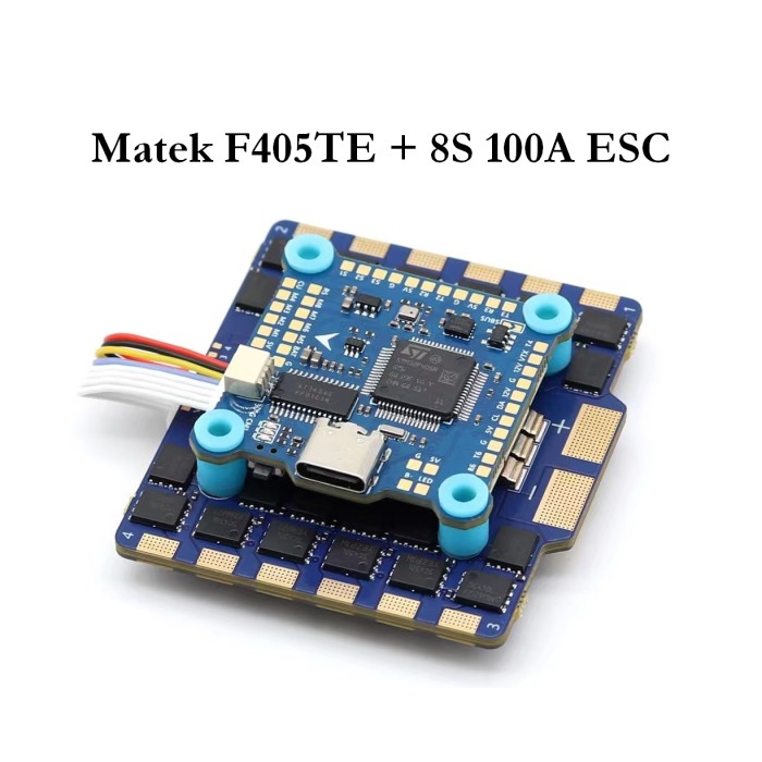 Польотний стек Matek F405TE V2 + ESC 8S 100A AM32 4in1 — професійний комплект для FPV-крил та дронів. Потужний контролер з точними сенсорами та ESC на 100A забезпечують стабільність польоту, ефективне керування моторами та підтримку сучасних прошивок Betaflight, INAV, Ardupilot